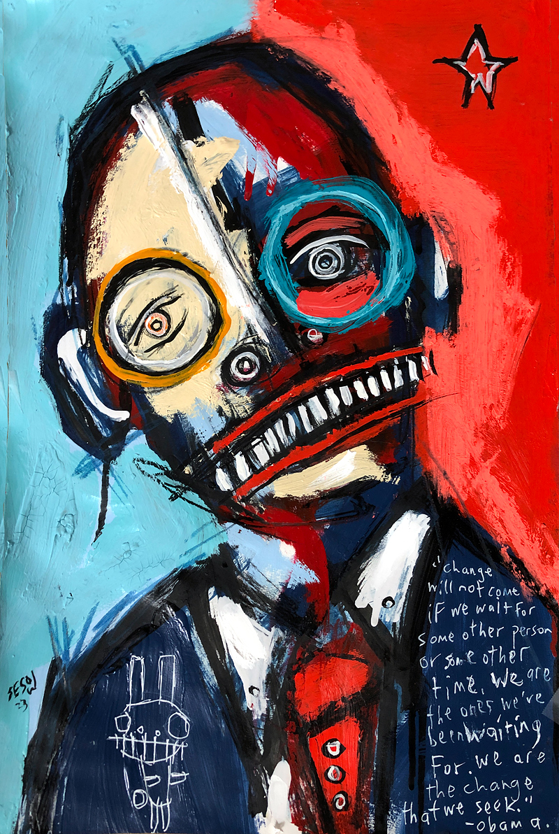 "Obama ('we are the change')" acrylic/mix on archival paper 12" x 18" *SOLD email sesow@sesow.com to reserve/ask about purchasing. please include url and description. |