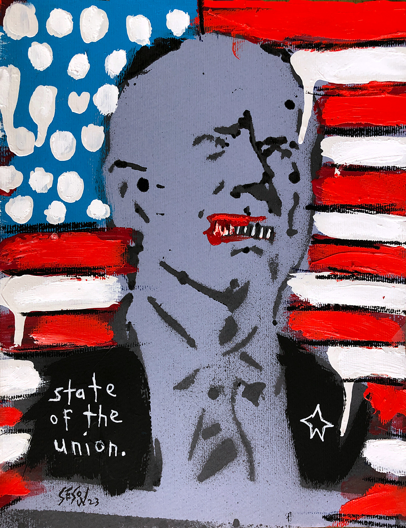"State of the Union" acrylic/spray paint on paper 8.5" x 11" *SOLD email sesow@sesow.com to reserve/ask about purchasing. please include url and description. |