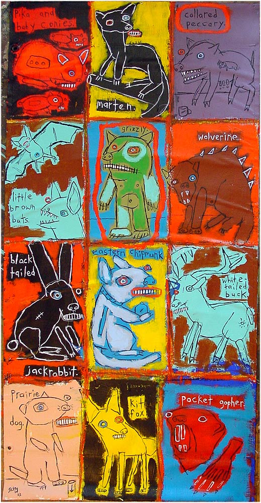 "Predators, Prey and a Pocket Gopher" 24" x 48" oil/acrylic on DC canvas street banner *SOLD |