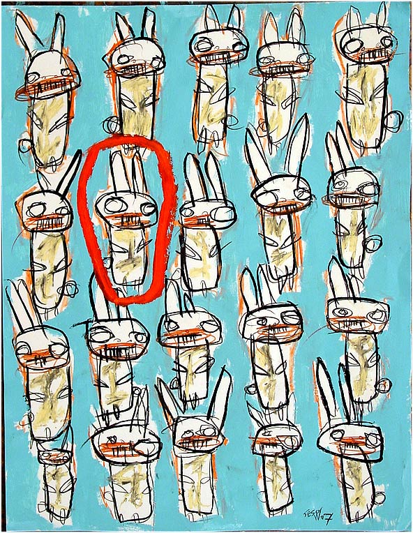 "Semaphore Bunny" 28" x 36" mixed on paper *SOLD |