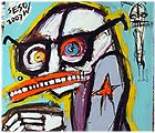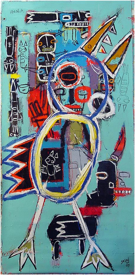 "Lucid, with one appendage" 29" x 60" oil/acrylic on DC canvas street banner *SOLD |