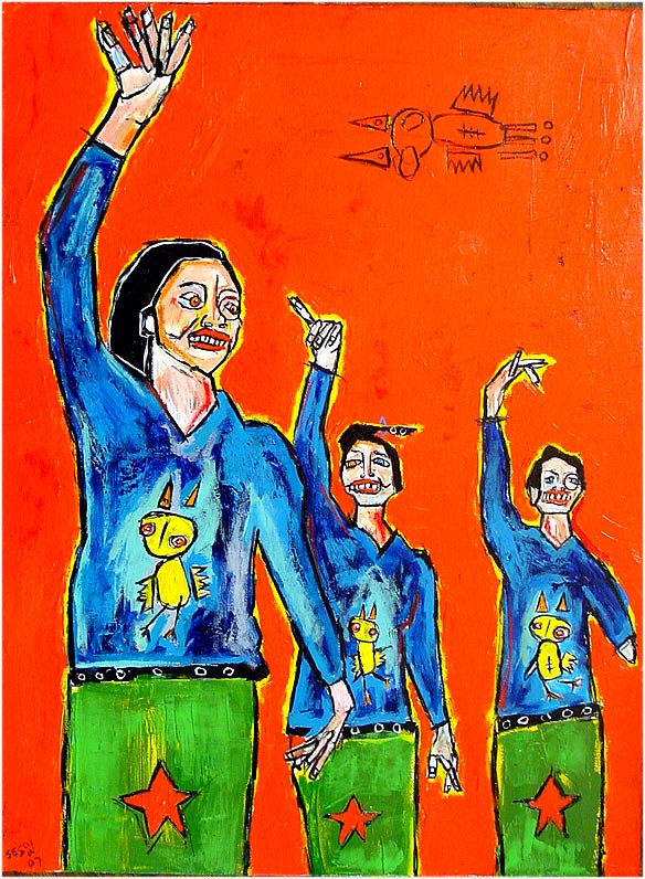 "Cooter and Friends" 26" x 48" oil/mixed on DC street canvas banner *SOLD |