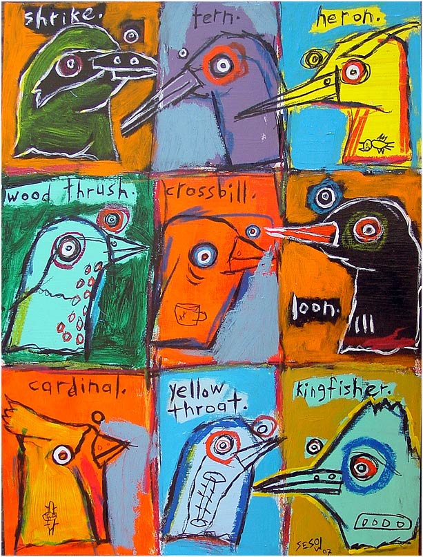 "Fish-eating Birds and Losely Related Birds with Varied Food Habits" 15" x 20" acrylic/oil mixed on watercolor board *SOLD |