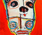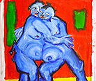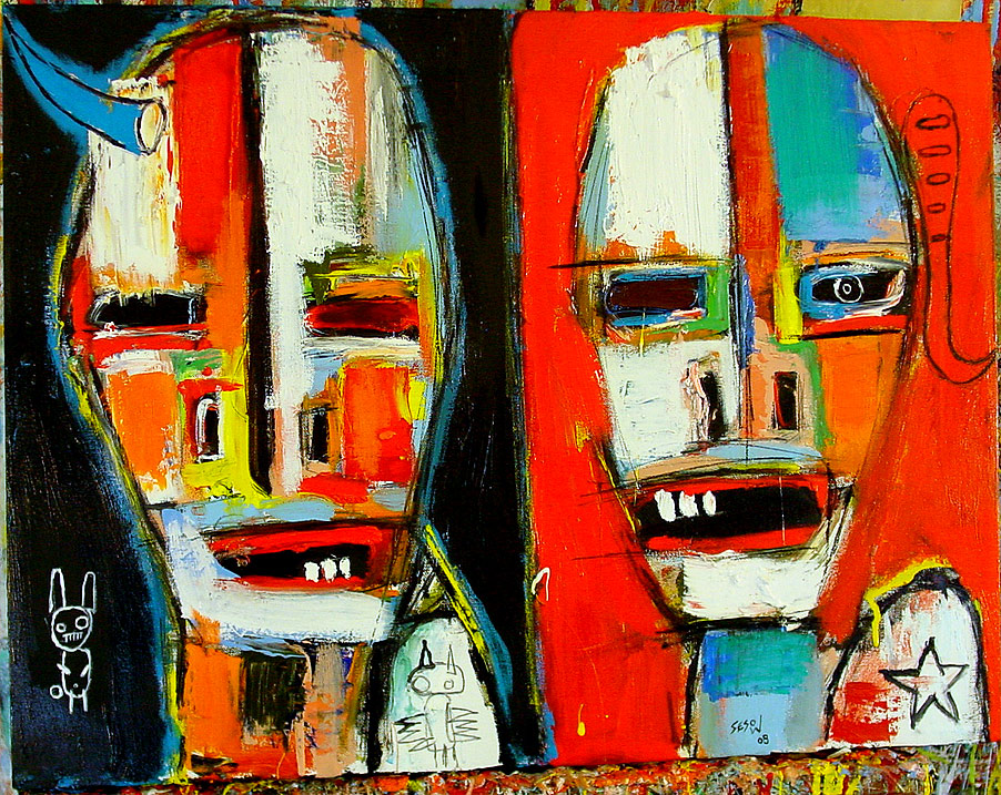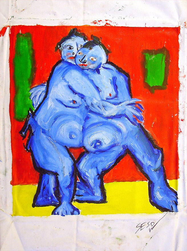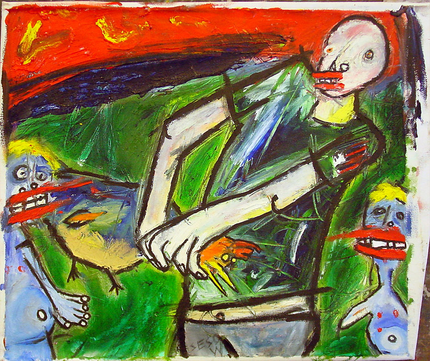 "Sumo Wrestlers (wrestling)" (completed by Sesow while in Peace Corps, Solomon Islands 1999) Santa Ana Island 16" x 18" acrylic/mixed non-stretched canvas *SOLD |
