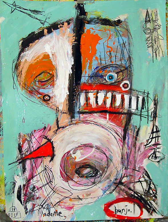 "Pandahat C" 9" x 12" acrylic,mixed on bristol paper *SOLD |