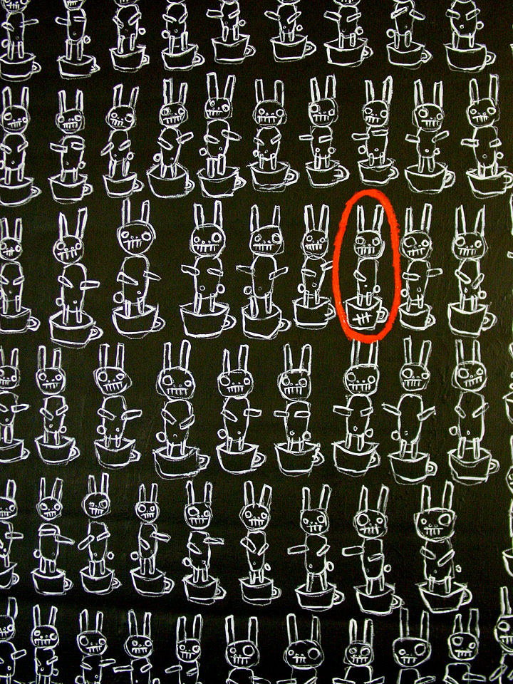 "100 teacups" 28.5" x 60" acrylic/housepaint on DC street banner *SOLD CLICK HERE FOR DETAIL |