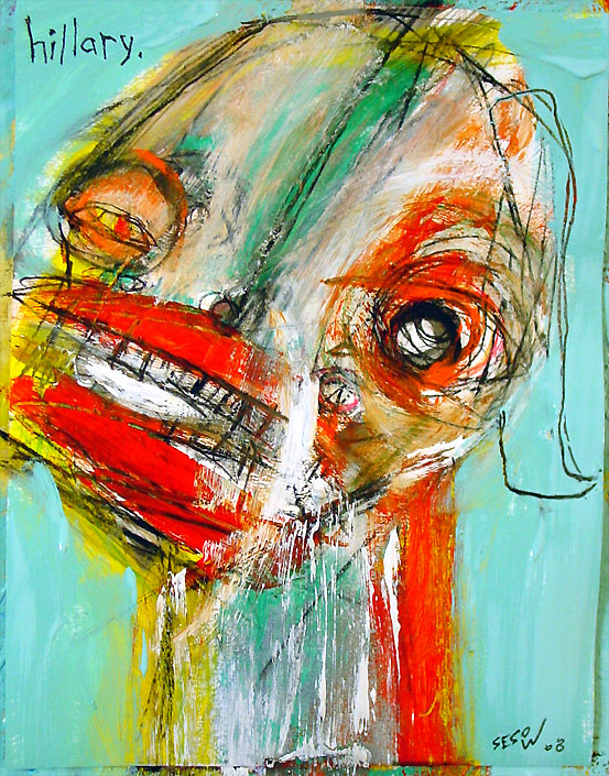 "Foaming Hillary" 13.5" x 10.5" oil/mixed on archival paper $70 |