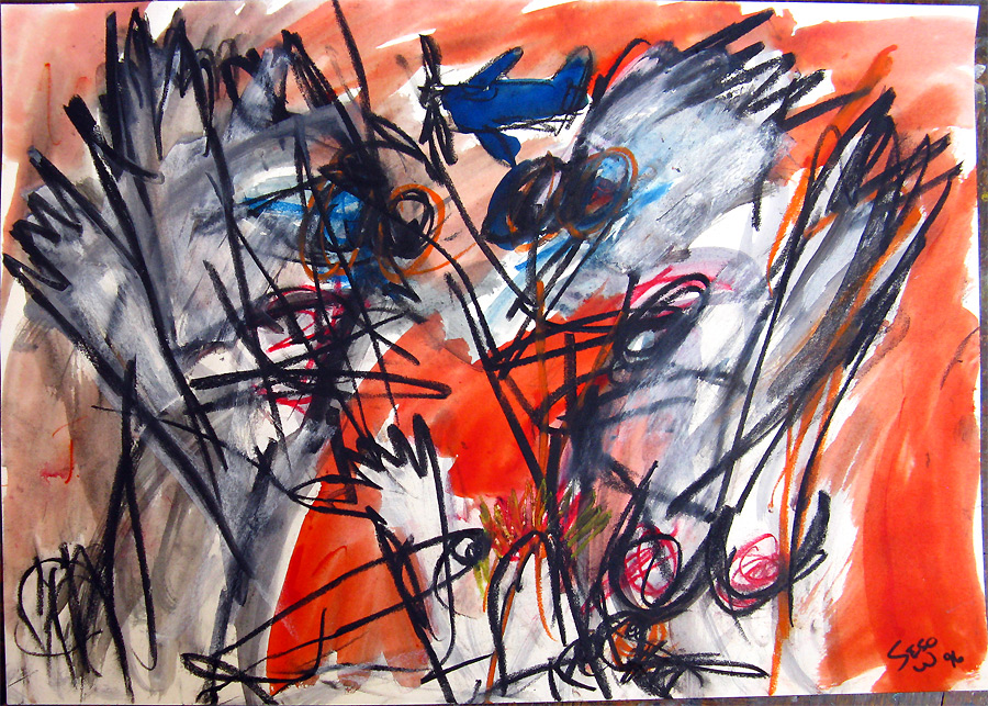 "A Small Boy Losing His Right Hand" 14" x 20" watercolor, charcoal on watercolor paper painting from 1996, taken out of retirement. title written on back from 1996 $140
