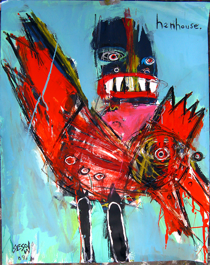 "Henhouse" 18" x 24" oil/mix on bristol paper $180