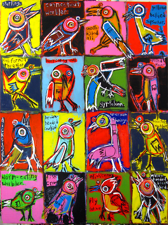 "A Guide to North American Birds" 30" x 40" acrylic/mixed on stretched canvas (1.5" stretcher bars) $600