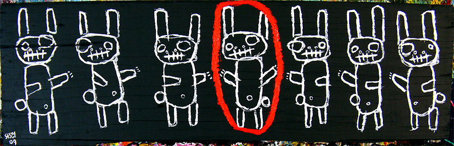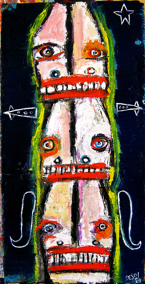 "Faces in the Crowd" approx 18" x 9" x 1.5" oil on wood $160