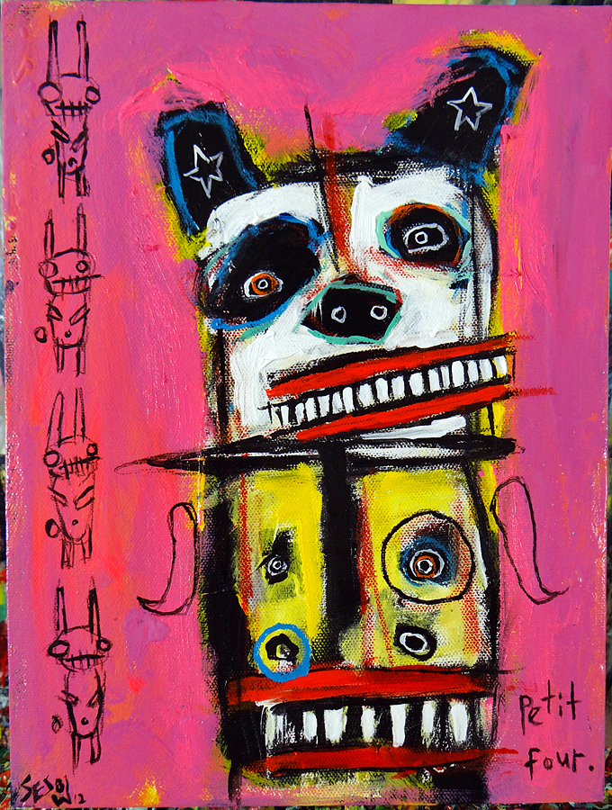 "Petit Four" acrylic/oil on stretched canvas 9" x 12" *SOLD email sesow@sesow.com to reserve/ask about purchasing. please include url and description. |