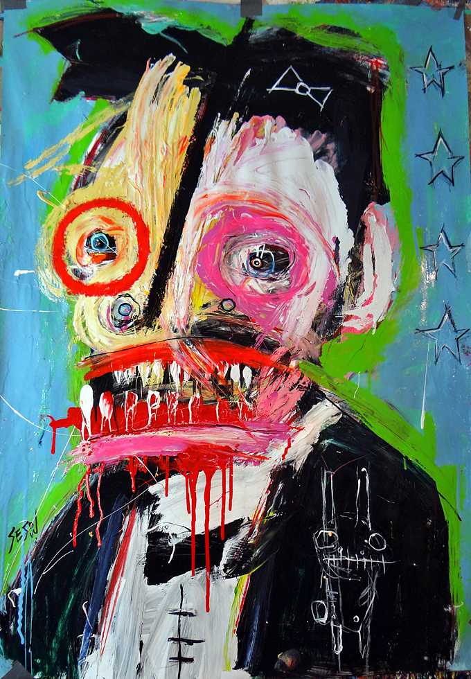 "Happy (with monocle)" acrylic/mix on archival paper 28" x 40" $190 email sesow@sesow.com to reserve/ask about purchasing. please include url and description. |