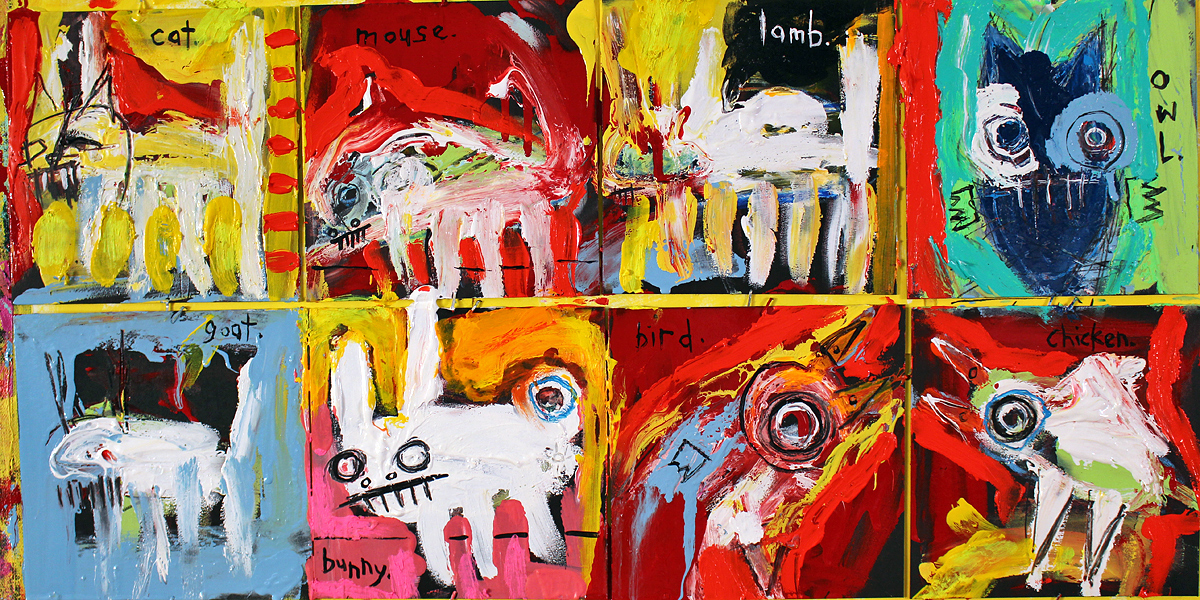 "Animal Attraction" acrylic/oil on EIGHT pieces of chipboard 6"x6" each *SOLD email sesow@sesow.com to reserve/ask about purchasing. please include url and description. |