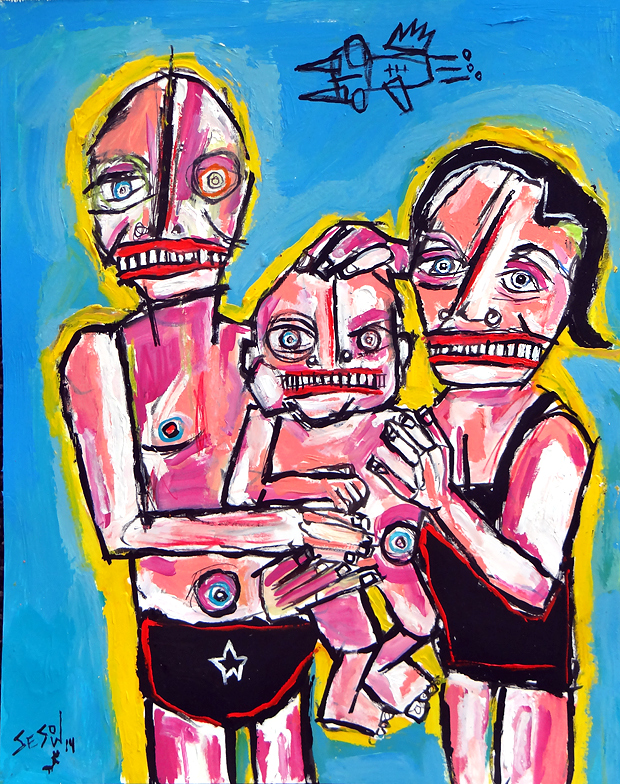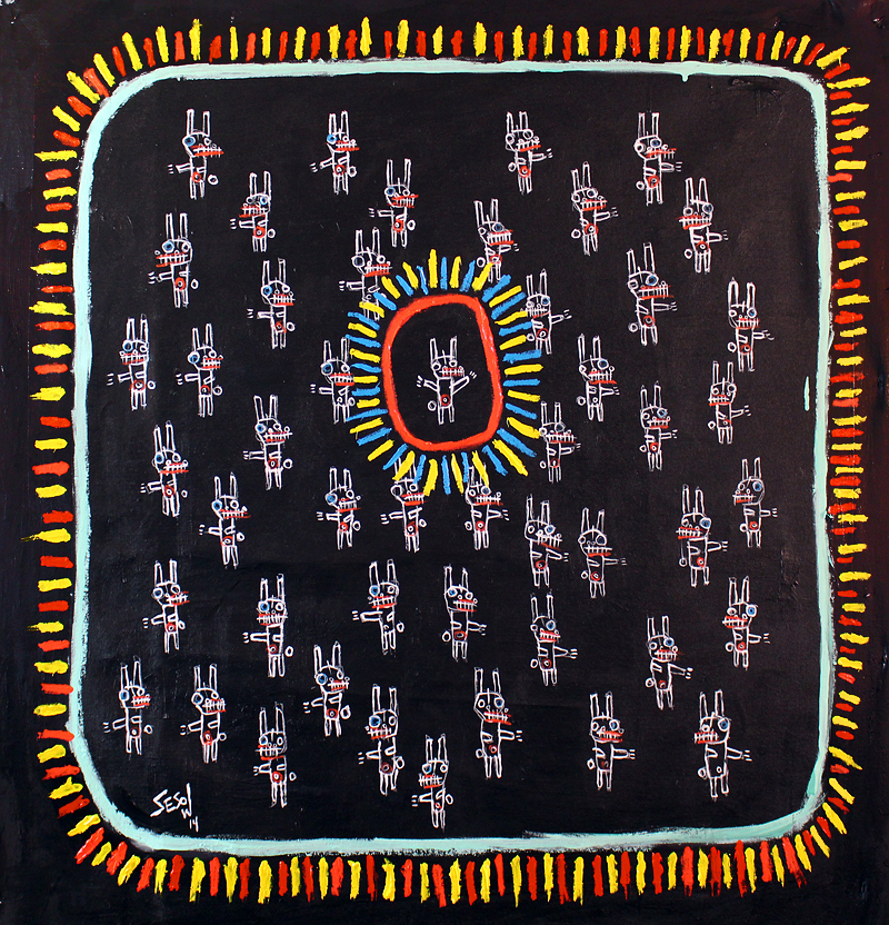 "All in the Family" acrylic/mix on unstretched canvas 24.5" x 30.5" (approx 27" x 33" with border) *SOLD email sesow@sesow.com to reserve/ask about purchasing. please include url and description. |