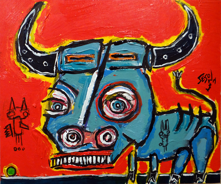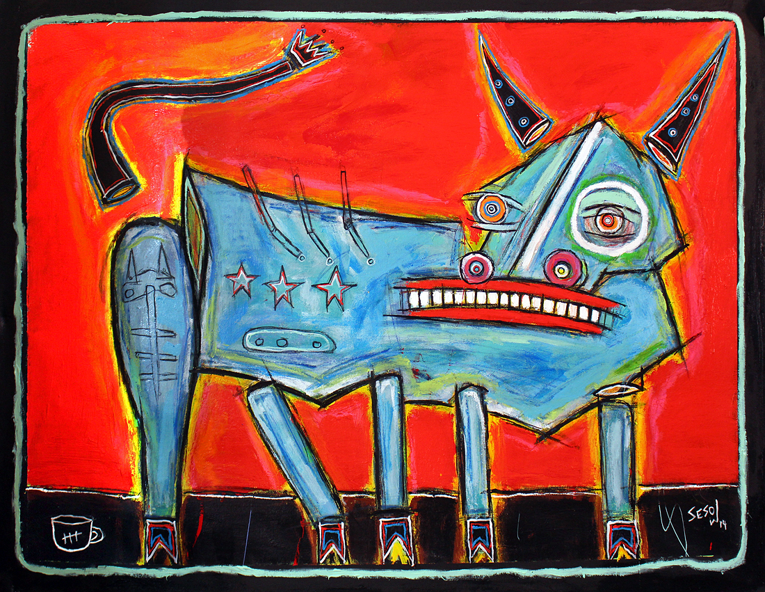 "Sesow Bull" acrylic/mix on bristol paper 11" x 14" *SOLD email sesow@sesow.com to reserve/ask about purchasing. please include url and description. |
