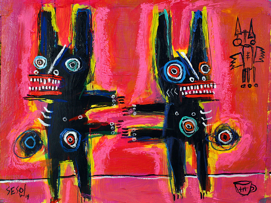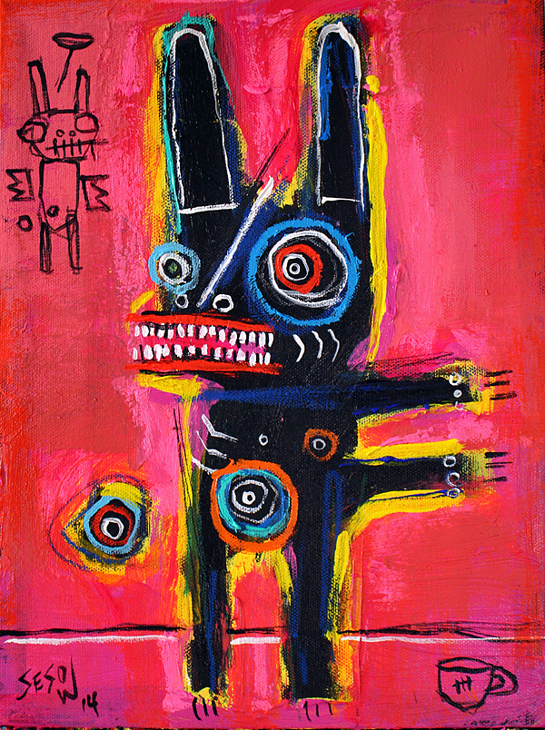 "Solo Bunny, left" acrylic/mix on stretched canvas 9" x 12" *SOLD email sesow@sesow.com to reserve/ask about purchasing. please include url and description. |