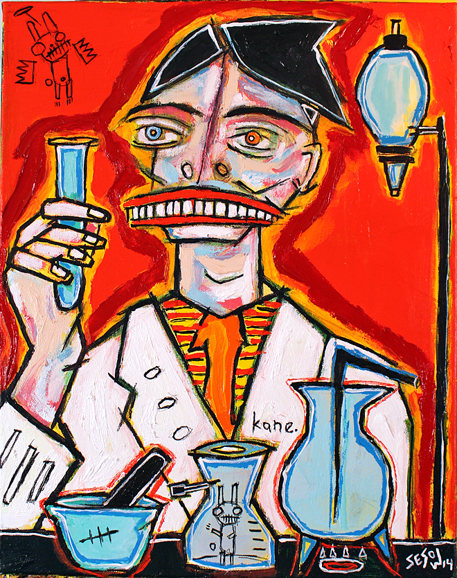 "The Chemist" acrylic/oil on stretched canvas 16" x 20" *SOLD email sesow@sesow.com to reserve/ask about purchasing. please include url and description. |