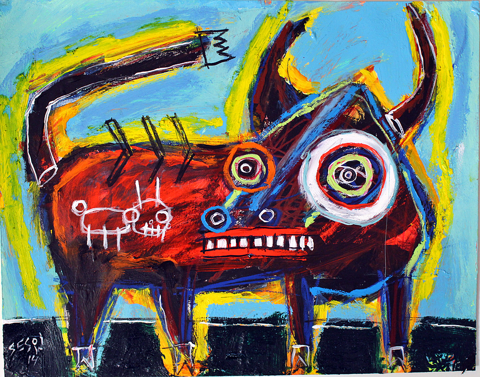 "Little Bull" acrylic/mix on bristol paper 11" x 14" *SOLD email sesow@sesow.com to reserve/ask about purchasing. please include url and description. |