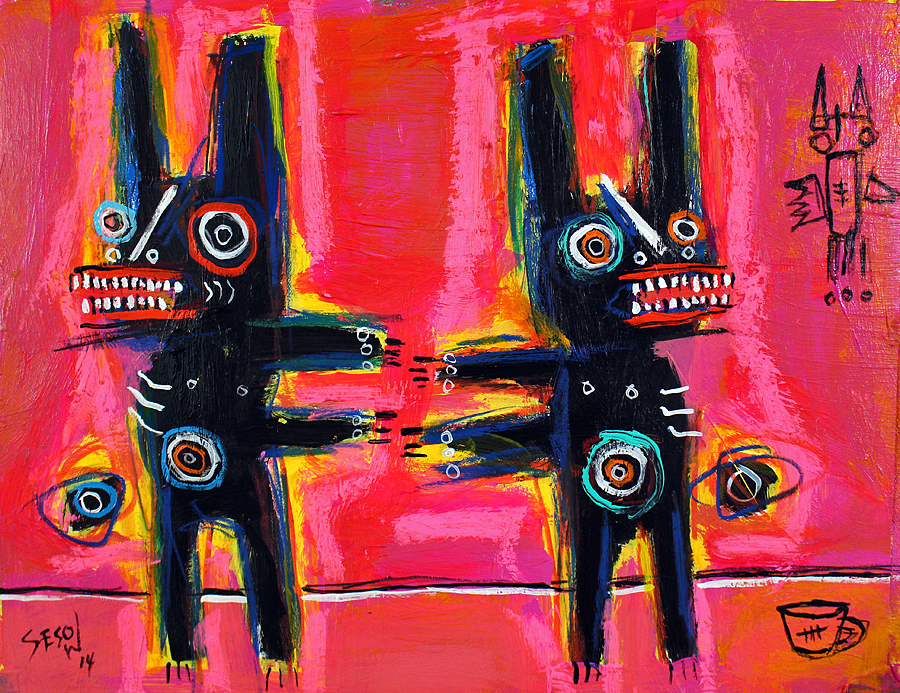 "Versus" acrylic/mix on bristol paper 11" x 14" *SOLD email sesow@sesow.com to reserve/ask about purchasing. please include url and description. |