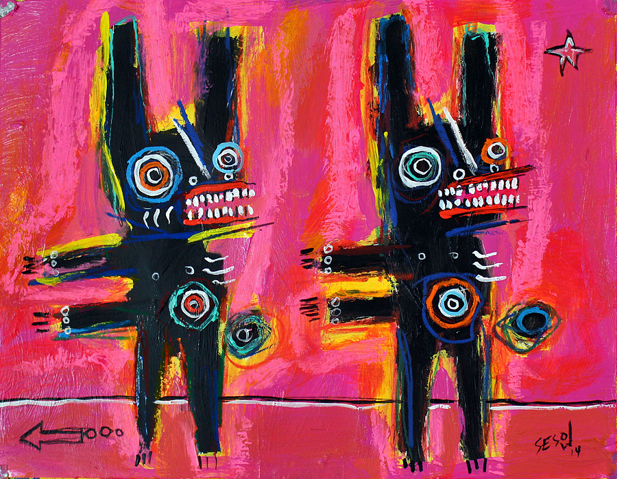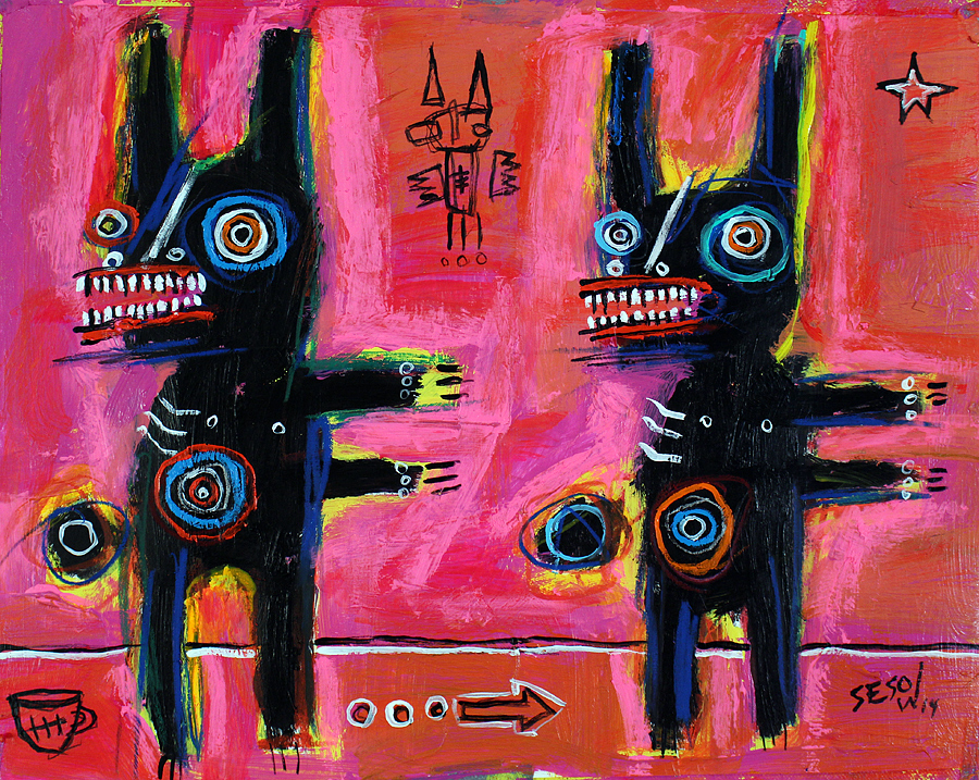 "Two go Left" acrylic/mix on bristol paper 11" x 14" *SOLD email sesow@sesow.com to reserve/ask about purchasing. please include url and description. |