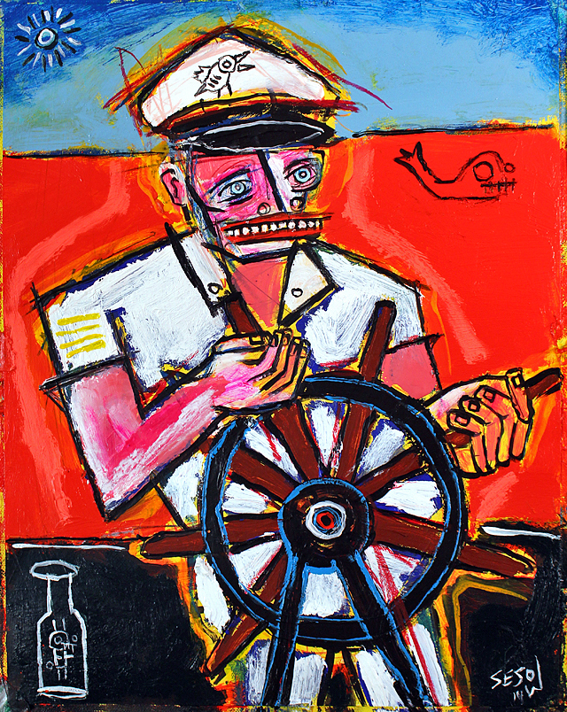 "Captain" acrylic/mix on bristol paper 11" x 14" *SOLD email sesow@sesow.com to reserve/ask about purchasing. please include url and description. |