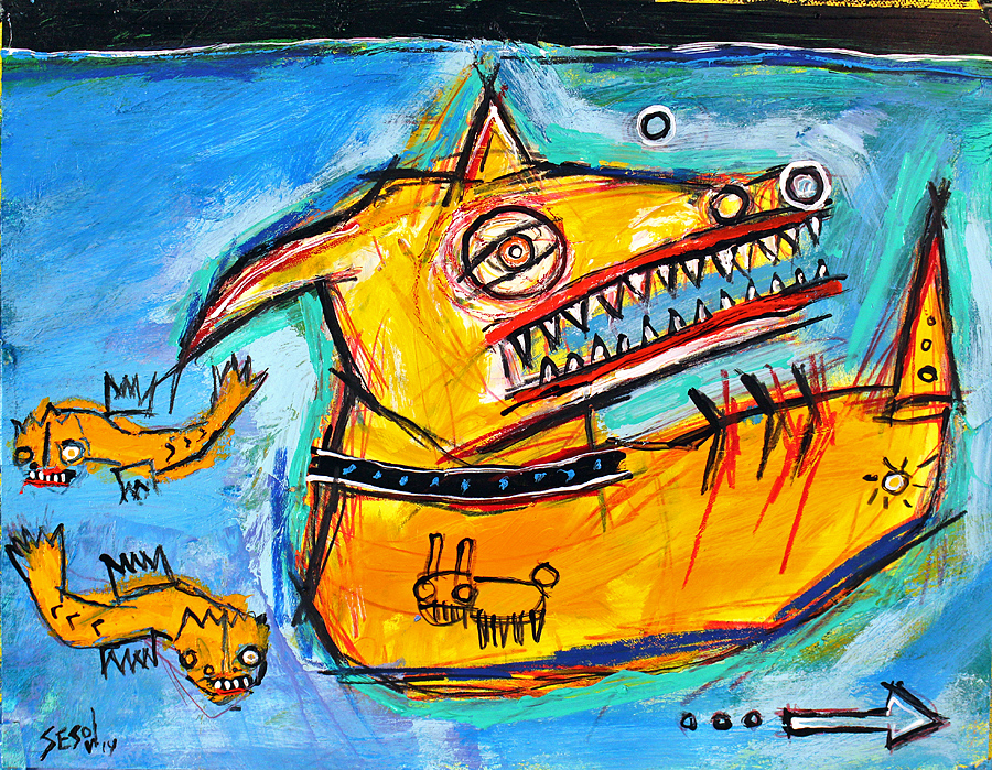 "All Smiles" acrylic/mix on stretched canvas 30" x 40" *SOLD email sesow@sesow.com to reserve/ask about purchasing. please include url and description. |