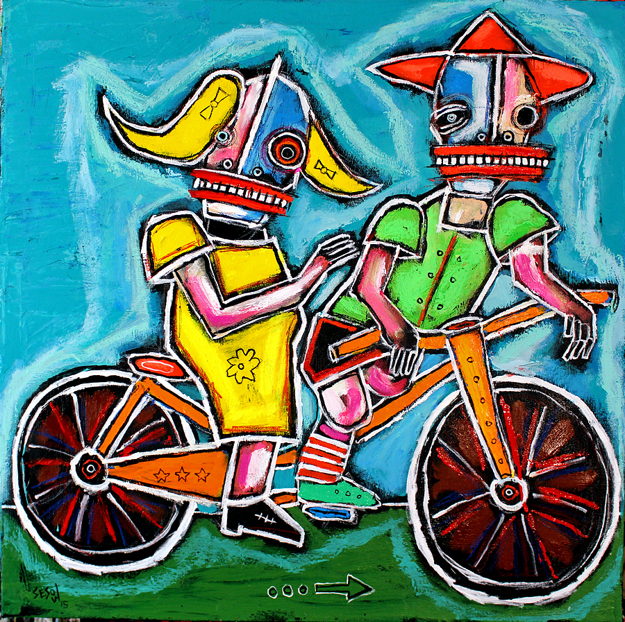 "the Cyclists" acrylic on stretched canvas 30" x 30" *SOLD email sesow@sesow.com to reserve/ask about purchasing. please include url and description. |