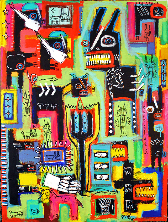 "Positive Prognosis" acrylic/oil on stretched canvas 30" x 40" *SOLD email sesow@sesow.com to reserve/ask about purchasing. please include url and description. |