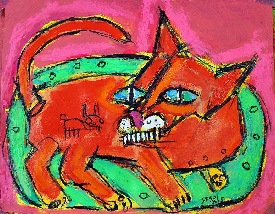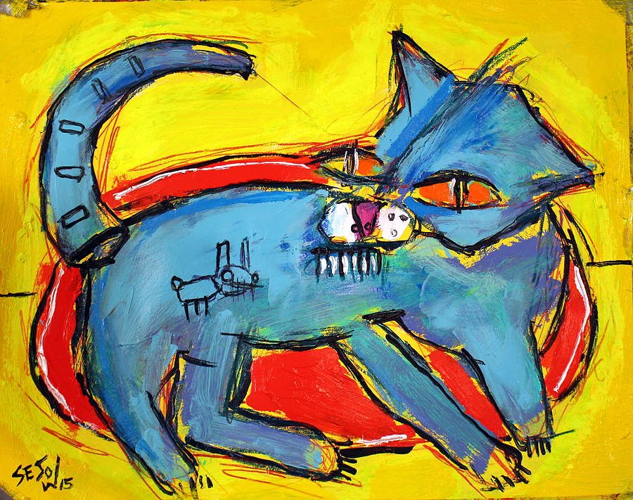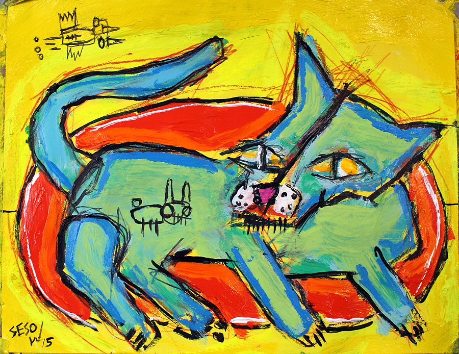 "Kitty on Green Blanket" acrylic/mix on bristol paper 11" x 14" *SOLD email sesow@sesow.com to reserve/ask about purchasing. please include url and description. |