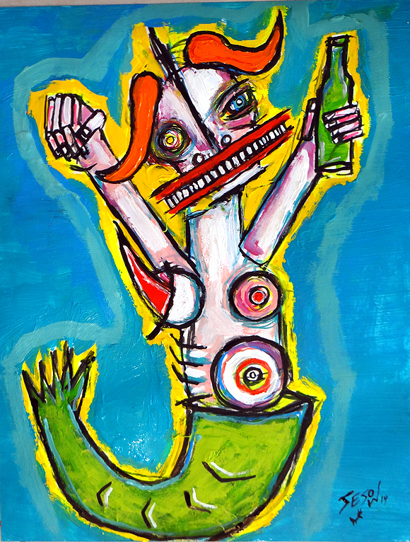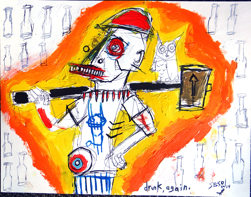 "Drunk" acrylic/mix on bristol paper 11" x 14" *SOLD Created in Melbourne Australia 2014 email sesow@sesow.com to reserve/ask about purchasing. please include url and description. |
