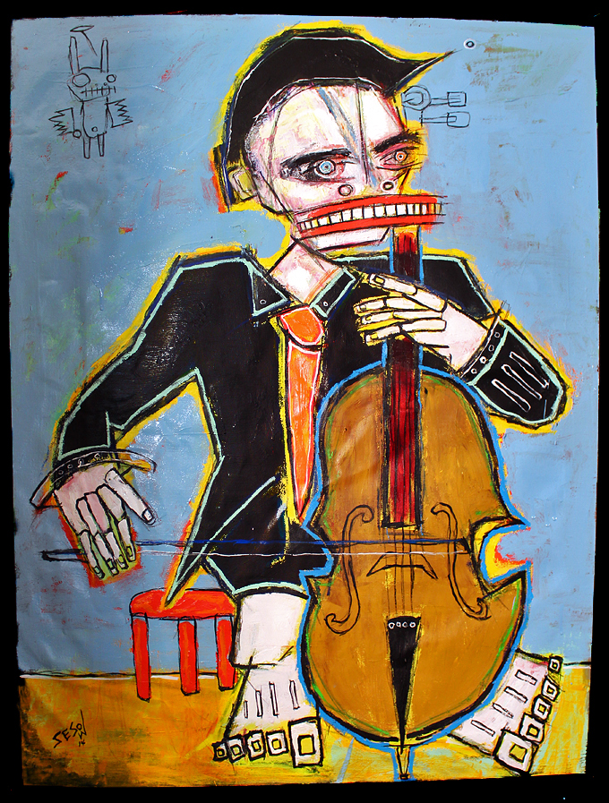 "The Cellist" acrylic/mix on canvas 30"x40" *SOLD email sesow@sesow.com to reserve/ask about purchasing. please include url and description. |