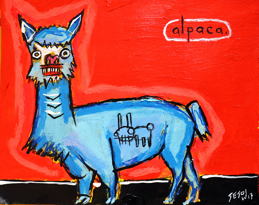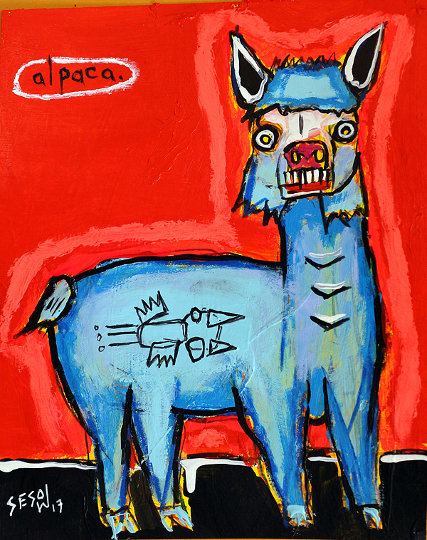 "The Alpaca" acrylic/mix on archival paper 8" x 10" *SOLD email sesow@sesow.com to reserve/ask about purchasing. please include url and description. |