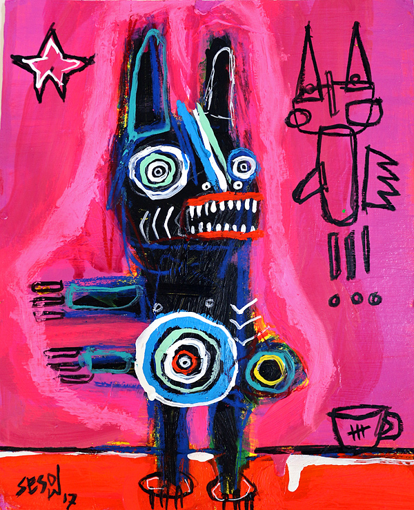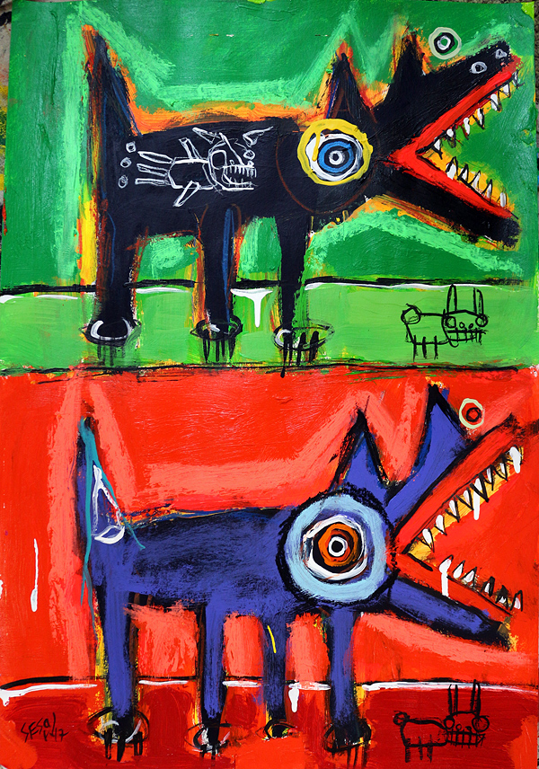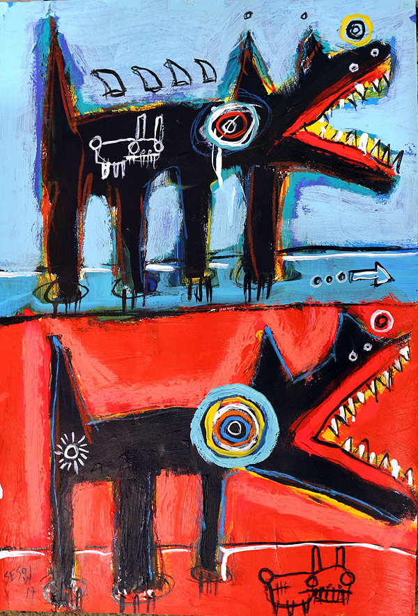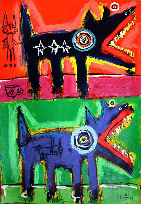 "Sesow Dogs" acrylic/mix on archival paper 22" x 15" *SOLD email sesow@sesow.com to reserve/ask about purchasing. please include url and description. |