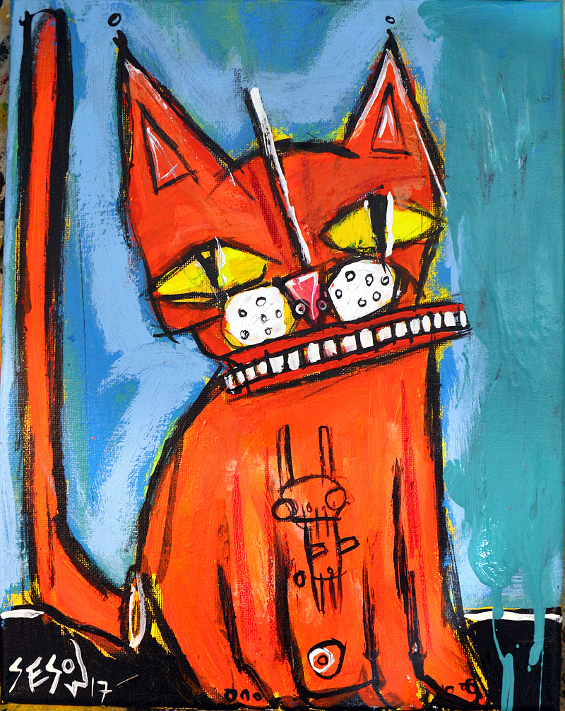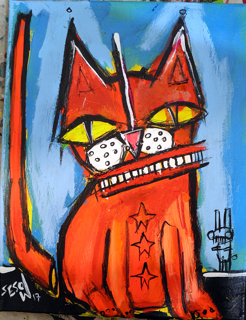 "Kitten Cat" acrylic/mix on stretched canvas 11" x 14" *SOLD email sesow@sesow.com to reserve/ask about purchasing. please include url and description. |