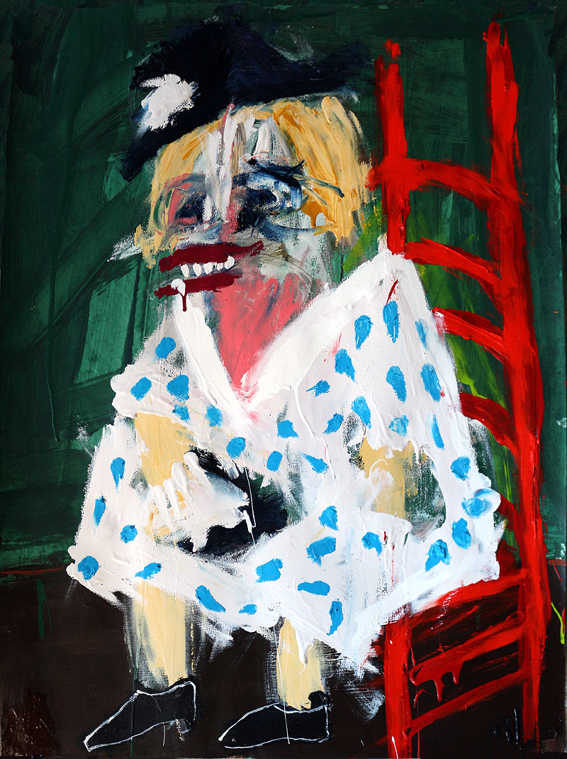 "Lady in polkadot dress " acrylic/mix on thick archival watercolor paper 22.5" x 31" *SOLD email sesow@sesow.com to reserve/ask about purchasing. please include url and description. |