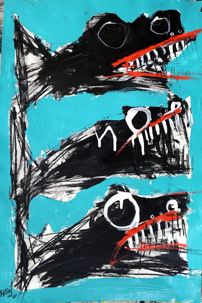 "Fishes" acrylic/mix on paper 12" x 18" *SOLD email sesow@sesow.com to reserve/ask about purchasing. please include url and description. |