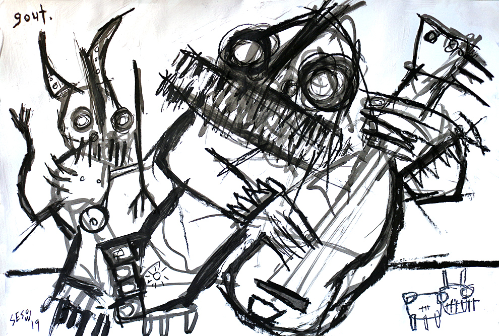 "Gout" acrylic/mix on archival paper 12" x 18" *SOLD email sesow@sesow.com to reserve/ask about purchasing. please include url and description. |