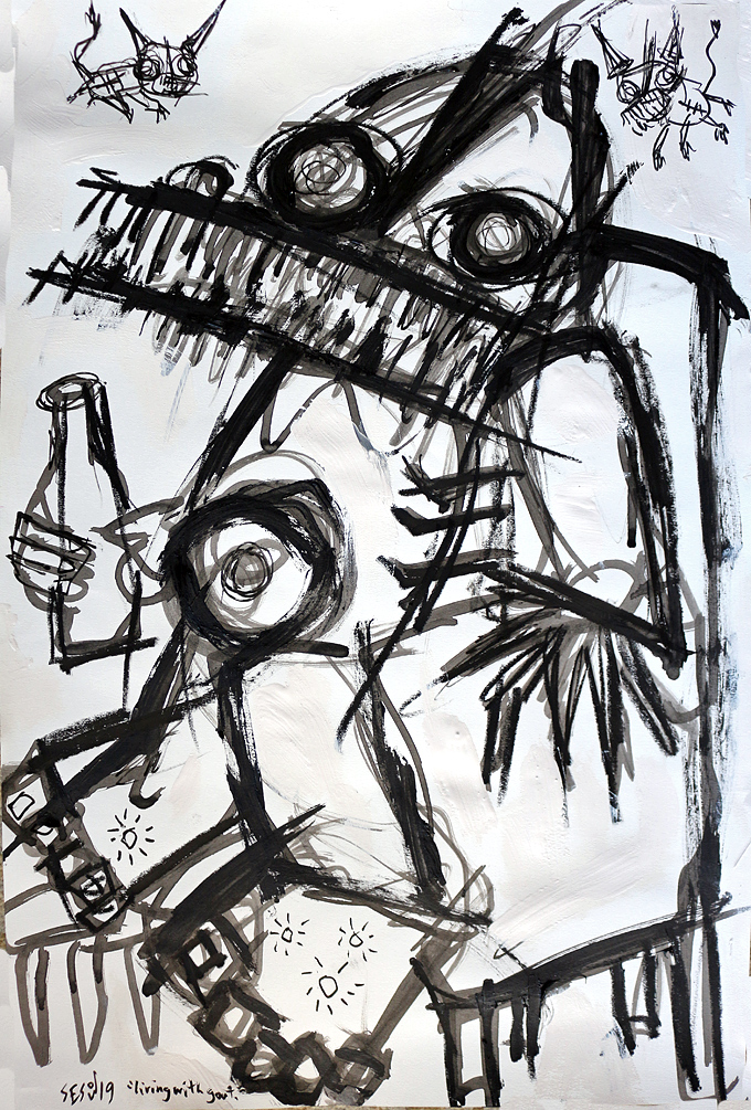 "Living With Gout" acrylic/mix on archival paper 12" x 18" *SOLD email sesow@sesow.com to reserve/ask about purchasing. please include url and description. |