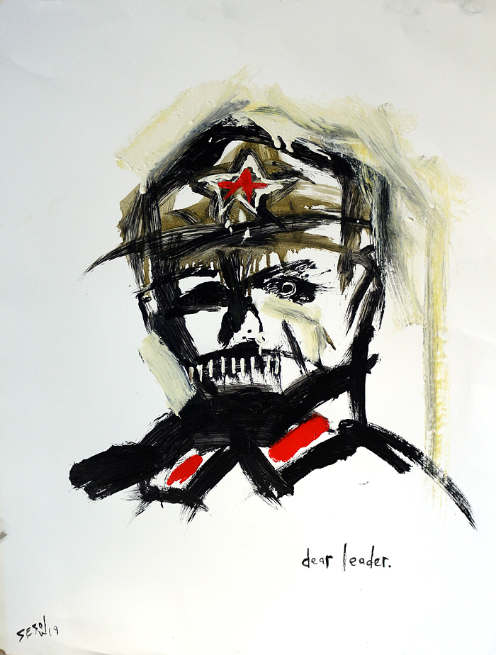 "Dear Leader" acrylic/mix on archival paper 26" x 20" *SOLD email sesow@sesow.com to reserve/ask about purchasing. please include url and description. |