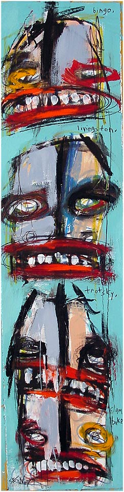 "Trotsky Clam Bake" approx 8.5" x 40" acrylic/oil/mixed on watercolor board *SOLD |