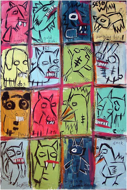 "Menagerie" 18" x 24" housepaint on stretched canvas 100% of sale went to Cure Autism Now ("CAN") *SOLD |