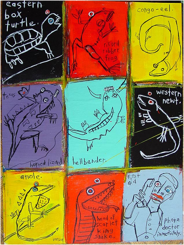 "Living with Reptiles" 15" x 20" acrylic/mixed on matboard *SOLD |