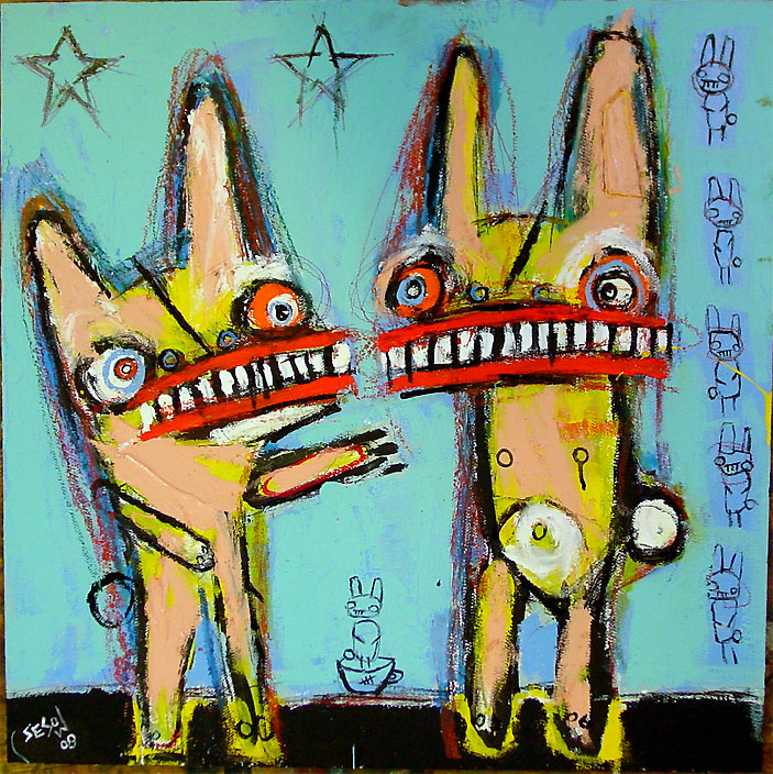 "Pair of tits" 18" x 24" acrylic/oil on stretched canvas *SOLD