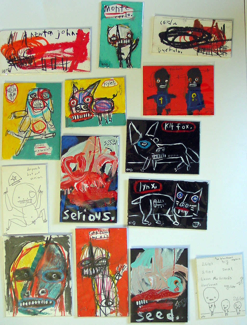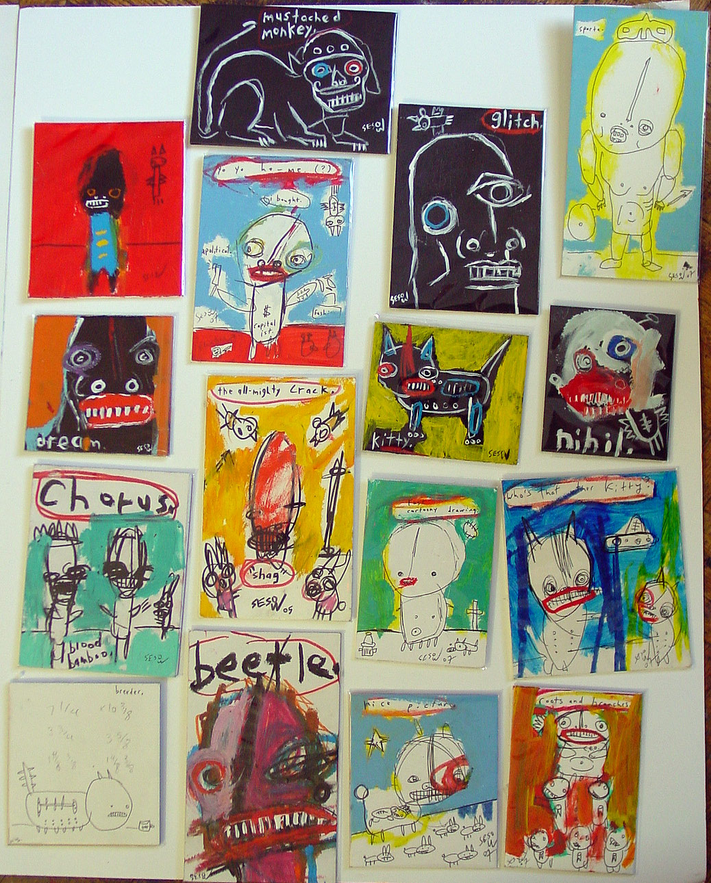 original small paintings various sizes, approx 4"x6" mixed on matboard $35/each (US postage included) email sesow.com to reserve