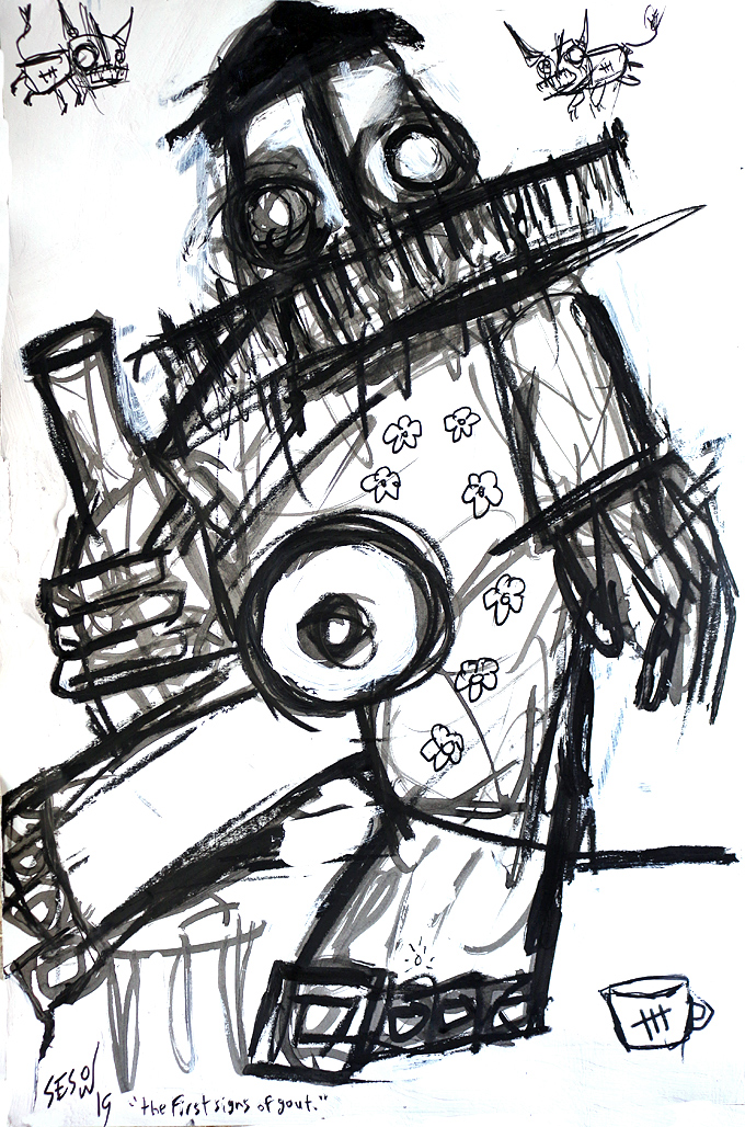 "The First Sign of Gout" acrylic/mix on archival paper 12" x 18" *SOLD email sesow@sesow.com to reserve/ask about purchasing. please include url and description. |