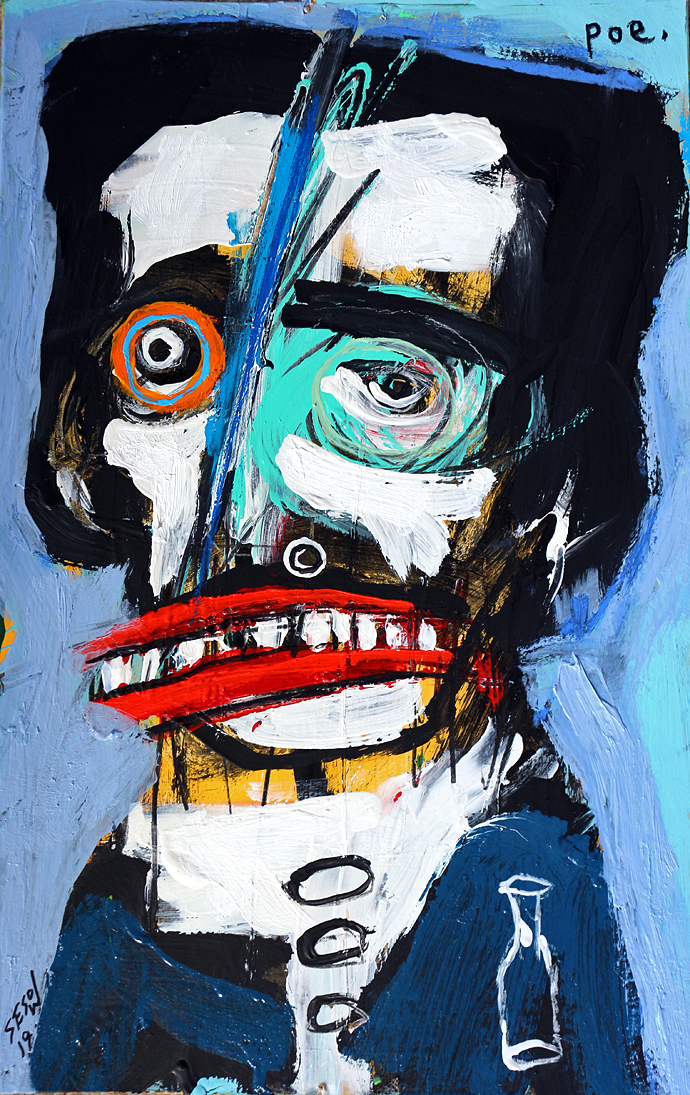 "Saddened Poe" acrylic/mix on matboard approx. 16.5" x 10.5" *SOLD email sesow@sesow.com to reserve/ask about purchasing. please include url and description. |