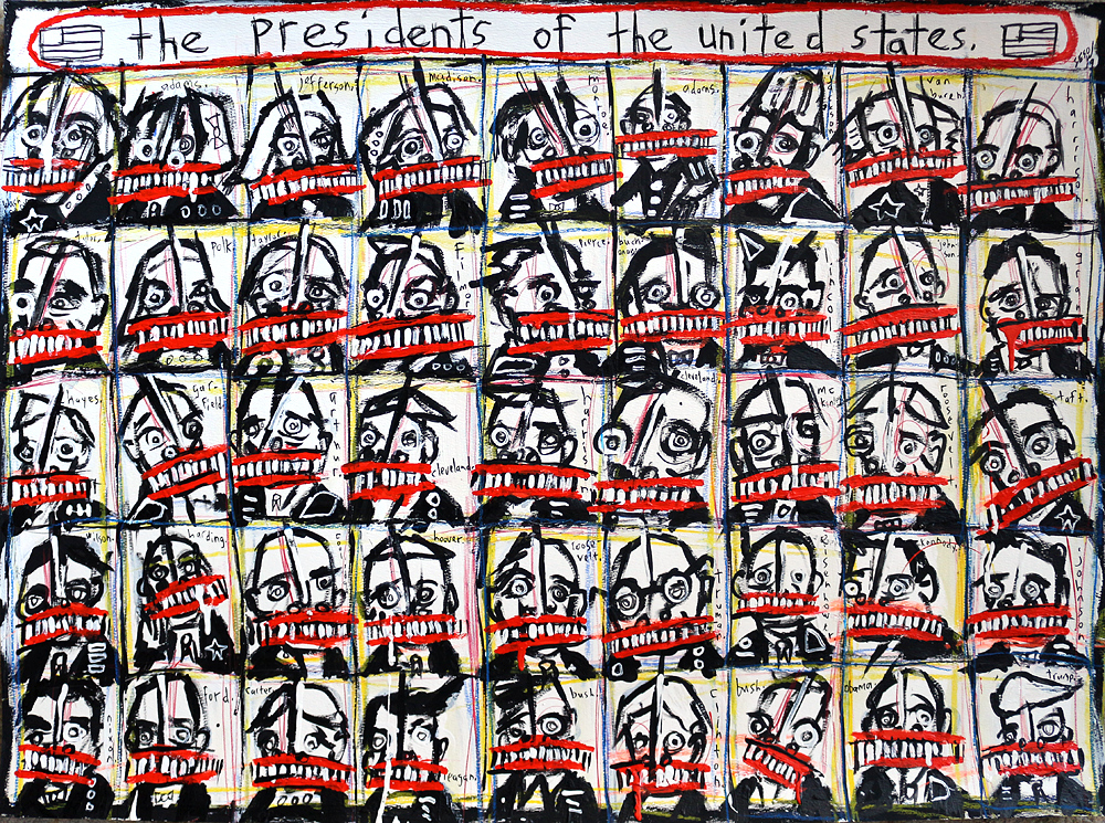 "The Presidents of the United States" acrylic/mix on watercolor paper 22.5" x 31" *SOLD email sesow@sesow.com to reserve/ask about purchasing. please include url and description. |