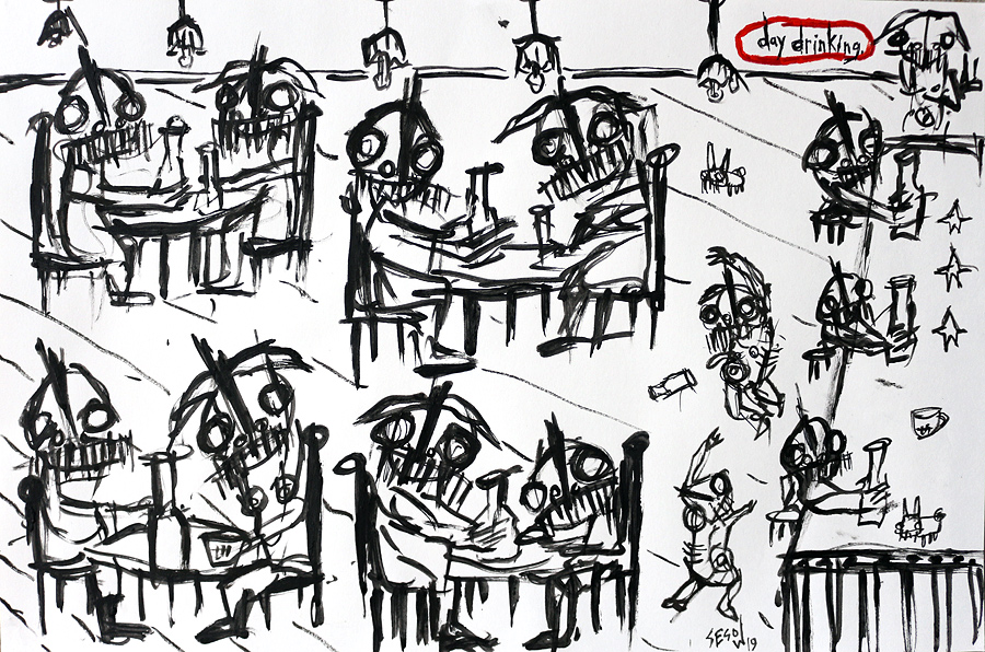 "Daydrinking" acrylic/mix on archival paper 12" x 18" *SOLD email sesow@sesow.com to reserve/ask about purchasing. please include url and description. |