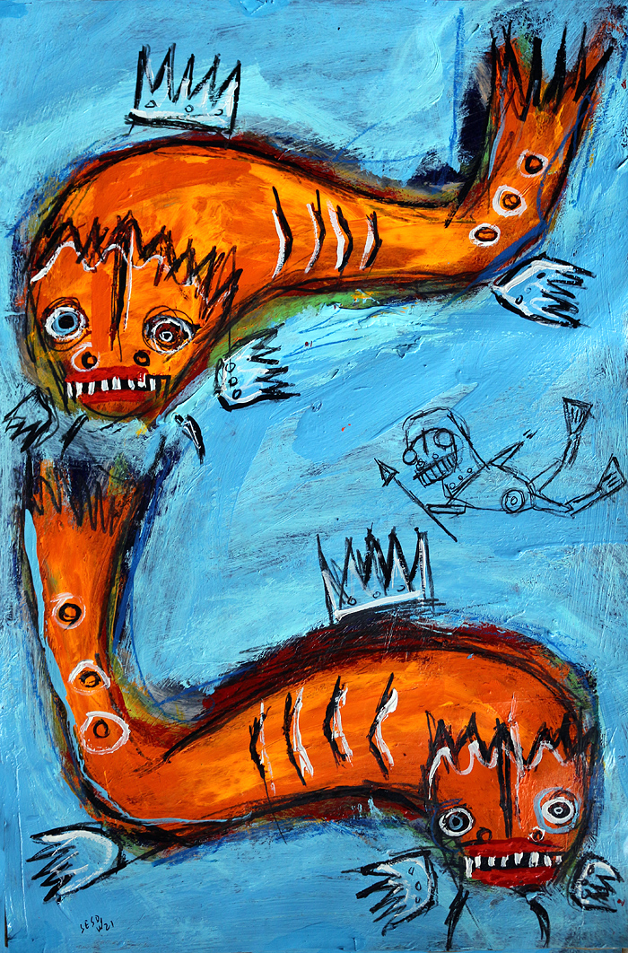 "Mermaid (2)" acrylic/mix on paper 12" x 18" *SOLD email sesow@sesow.com to reserve/ask about purchasing. please include url and description. |